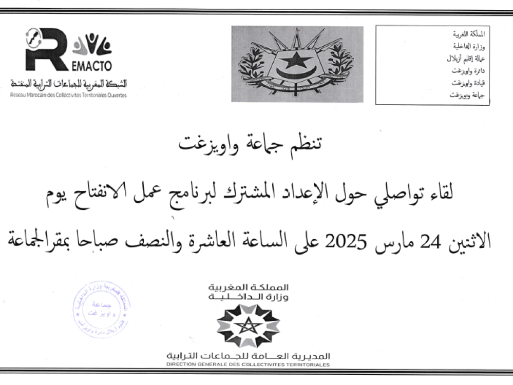 تنظم جماعة واويزغت لقاء تواصلي حول الاعدادج المشترك لبرنامج الانفتاح
